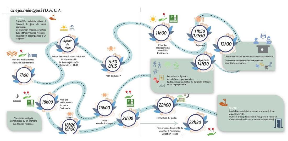 Des activités sont prévues tous les jours par l’équipe soignante, le planning est affiché au sein de l’établissement.