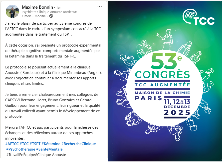 Ce travail s’inscrit au cœur des missions du pôle URDA, qui vise à développer la recherche clinique en lien direct avec les prises en charge proposées au sein de la clinique, notamment dans la filière psychotraumatisme.